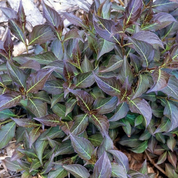Buy Dark Horse Weigela online. This old-fashioned, floewring deciduous shrub is a superior compact form with very dark foliage and deep pink flowers that contrast well with the foliage. A great landscape plant, it retains the color interest throughout the season.