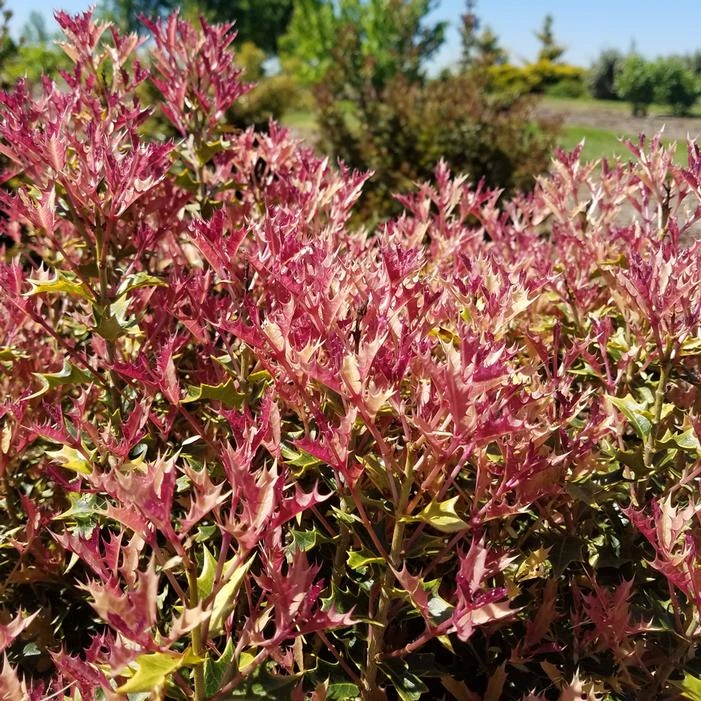 Buy Party Lights™ Osmanthus online. Evergreen shrub with extraordinary cream, pink, yellow, and white leaves in the spring. A compact, slow grower that is great as a low hedge or mid-height accent plant.