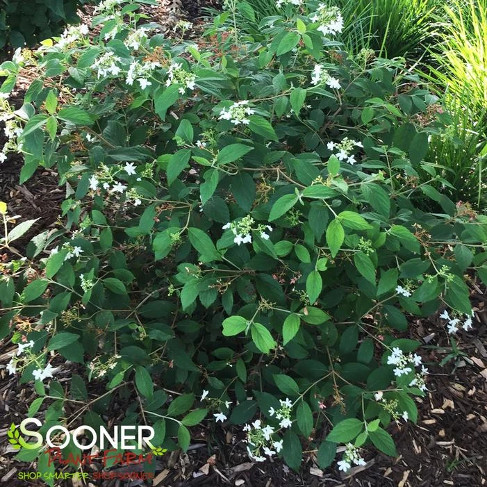 Buy Summer Snowflake Doublefile Viburnum online. Lovely white flowers are almost continuous throughout the summer. This semi-dwarf doublefile viburnum has reddish fruit in winter.